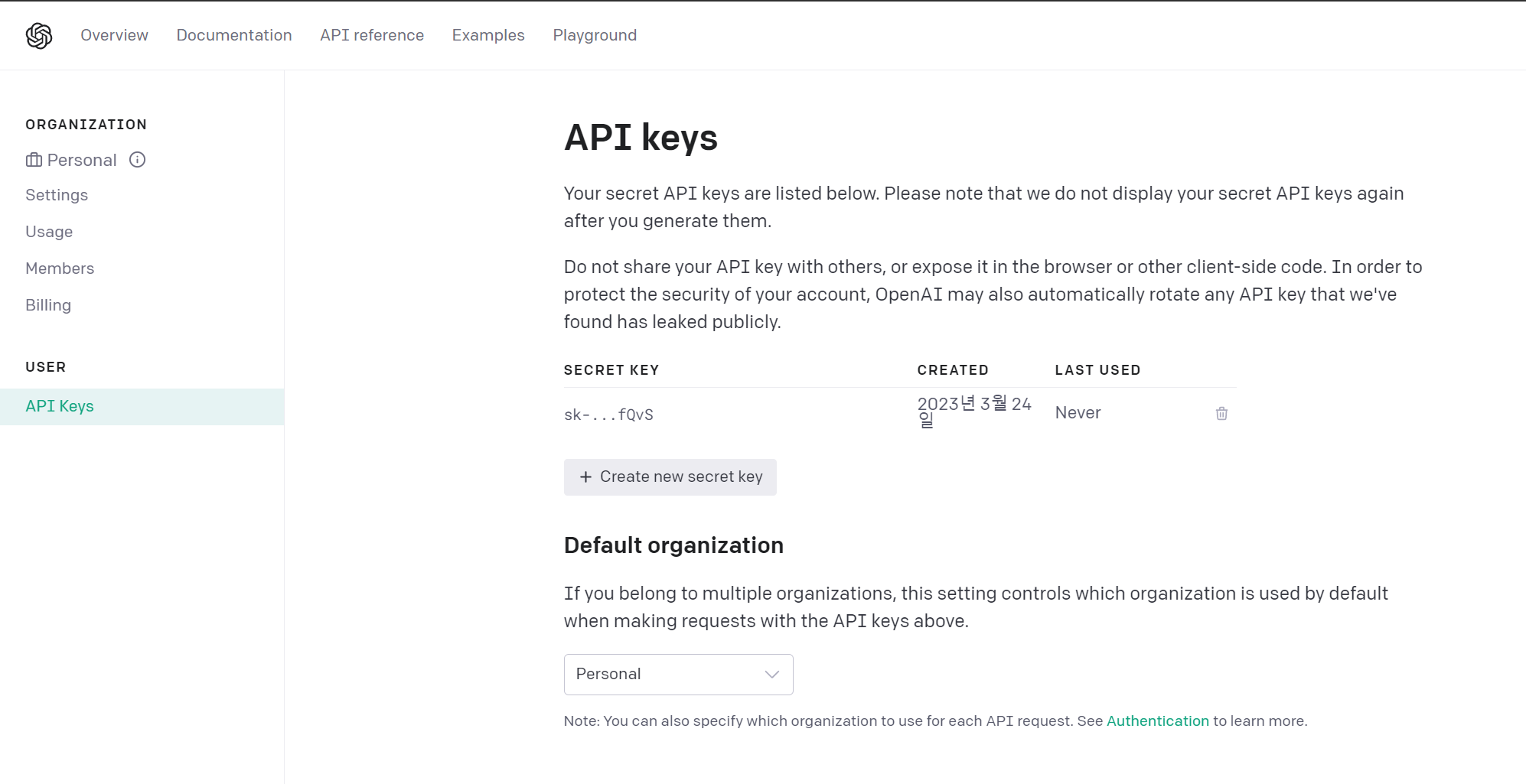 3. OpenAI (ChatGPT) API Key 발급 및 복사