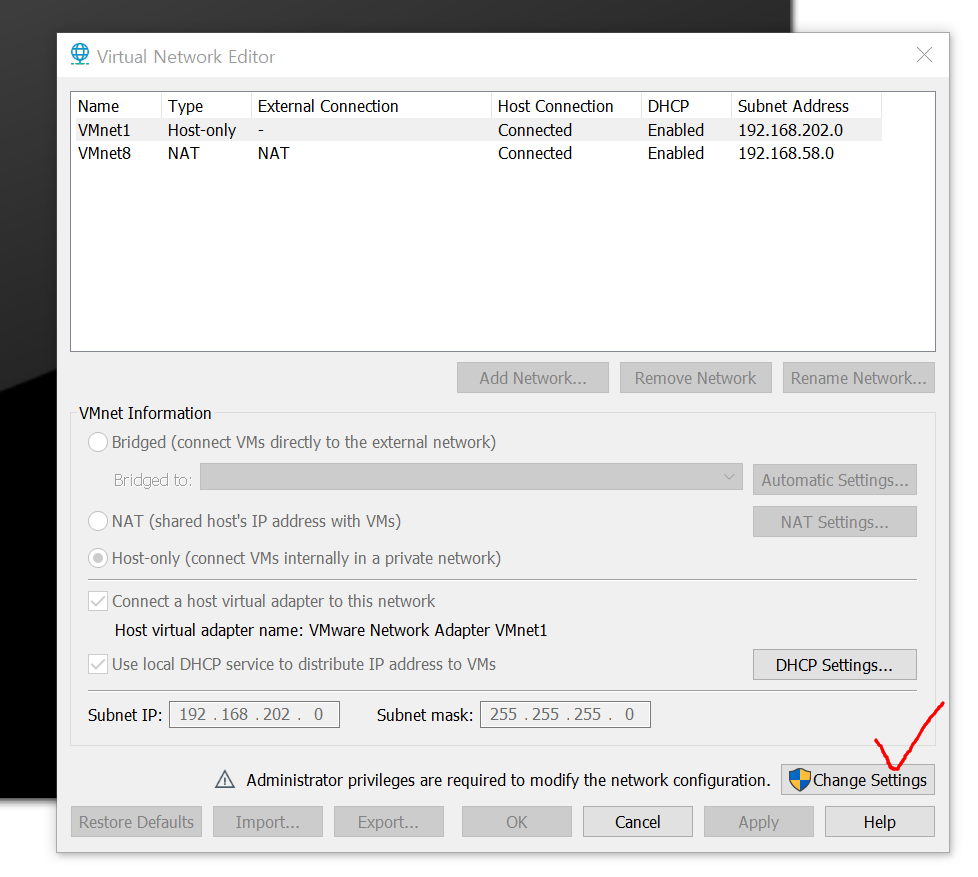 3. VMware / Edit / Virtual Network Editor (네트워크 드라이버 초기화)