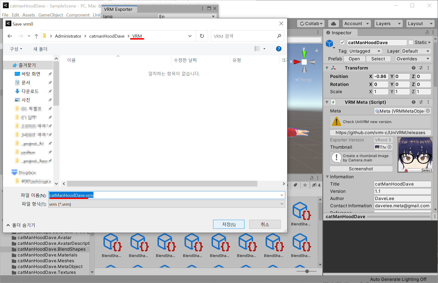 VRM 폴더를 만든 후, 이름을 그대로 두고 저장했습니다.