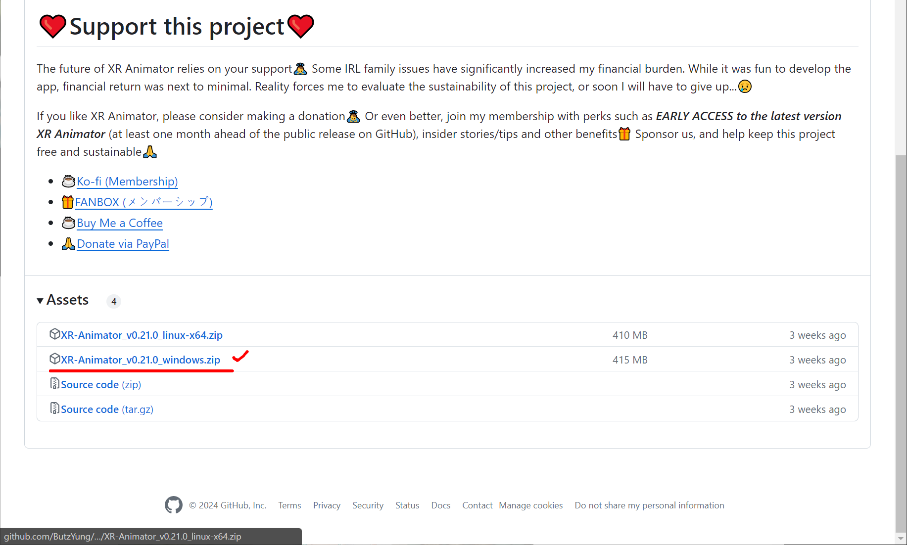 1. 페이지를 열어 아래로 내려보면 Asset 항목에서 해당하는 zip파일을 다운받습니다